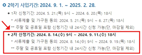 서류제출 및 가구원 동의 기간은 2024. 8. 14.(수) 9시 ~ 2024. 9. 19.(목) 18시까지입니다.
