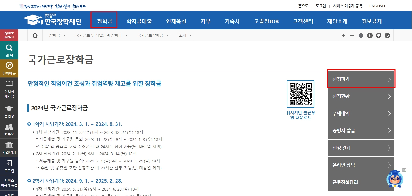 2024년도 2학기 국가 근로 장학금 공고 관련하여 신청 기간 은 2024. 8. 14일 9시부터 2024. 9.11일 18시까지이며, 이 기간 내에만 신청 가능하니 미리미리 체크해 두셔야 좋습니다! 많은 분들이 자주 잊거나 놓치는 부분 중 하나니까요.