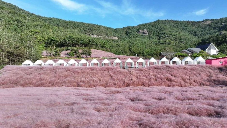 마지막으로 소개할 지역은 경주 지역의 조용하고 평화로운 환경 속에서 자생하는 대규모의 핑크 뮬리 군락지입니다! 이곳 역시 관광객들에게 특별히 추천되는 장소로써 평온함과 아름다움이 조화를 이루고 있습니다.