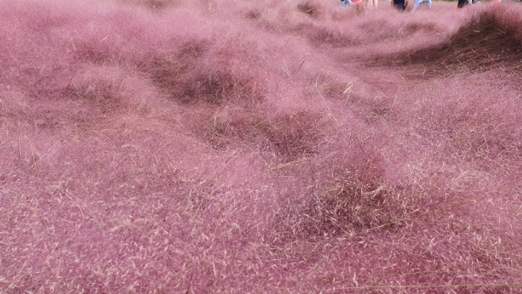 핑크뮬리는 대표적인 가벼운 꽃으로, 일반적으로 여름부터 초가을까지 피며 특히 9~10월에 그 모습을 가장 아름답게 드러냅니다. 하늘과 땅이 만나는 곳에서 연분홍빛으로 물든 풍경은 그 자체로 장관입니다.