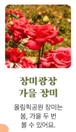 서울 송파구에 위치한 올림픽공원은 잔디밭과 벤치 등 다양한 시설이 갖춰져 있어 여유롭게 시간을 보내기 적합합니다. 예쁜 꽃들과 함께 찍힌 사진들은 소중한 추억으로 남기 좋은 곳이며, 특히 언제 방문해도 항상 약간의 개방감을 느낄 수 있습니다.