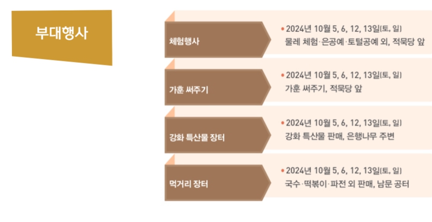 먹거리 장터, 지역특산물장터, 무료 가훈 써주기, 양헌수 장군 퍼레이드 등