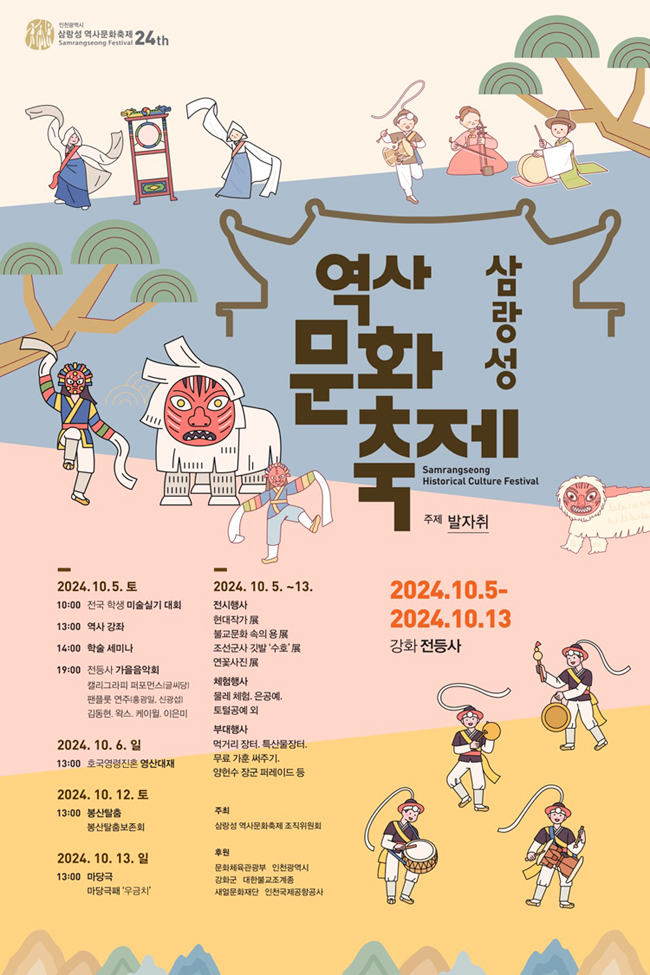 삼랑성역사문화축제는 인천광역시 강화군에서 열리는 축제로, 지역의 역사와 문화를 기념하고 보존하기 위해 매년 개최됩니다. 이 축제는 지역 주민뿐만 아니라 관광객들에게도 큰 인기를 끌고 있으며, 다양한 프로그램과 볼거리가 마련되어 있습니다. 특히, 삼랑성의 역사적 배경과 문화유산을 체험할 수 있는 기회가 많아 많은 사람들이 찾는 행사입니다.