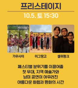 - 10월 6일(일): 와인 시음 및 판매부스 운영, 문화 공연 진행